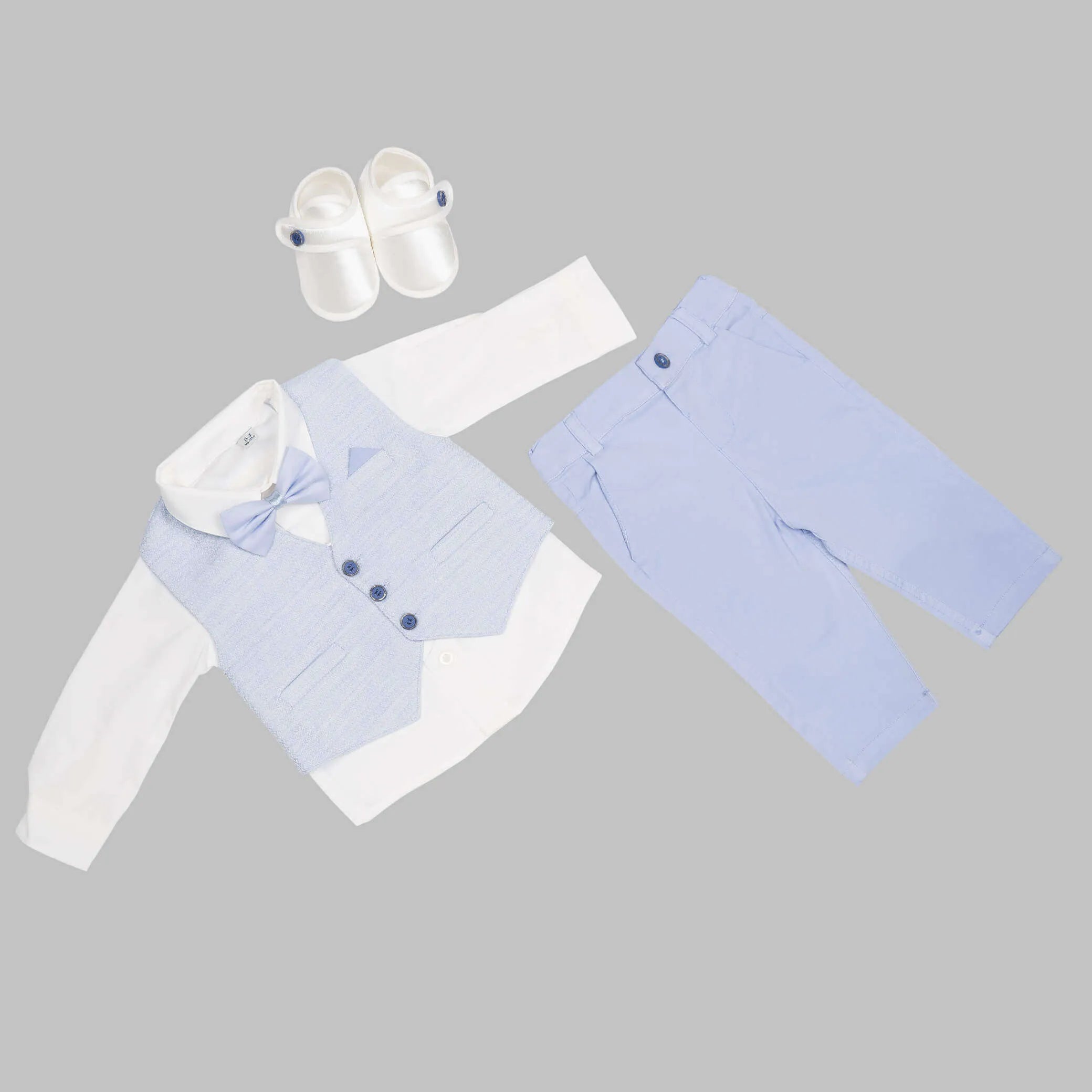 Included in the set: Vest, shirt, trousers, bow tie, shoes